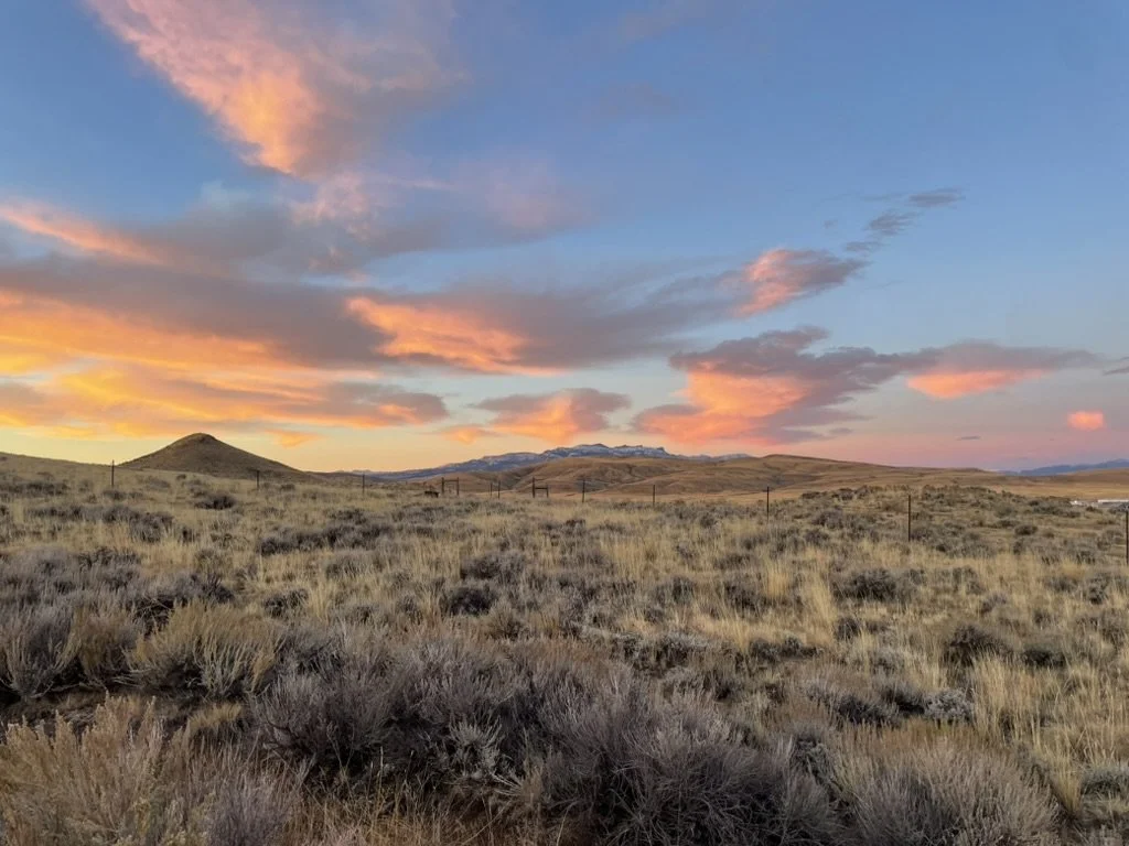You’ll find yourself at 5,000 feet in the high and windy Wyoming desert, bordered by the Absaroka mountain range to the west and the badlands of the McCulloch Peaks to the east. To the north, Heart Mountain looms. Sunrises and sunsets are a wonder to witness, and the night sky sparkles with countless stars. You might experience a warm blue sky one day and snow the next!